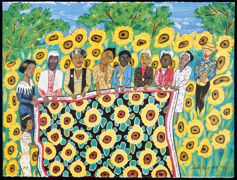 (Detail) Sunflower Quilting Bee at Arles, by Faith Ringgold, printed by the Rutgers Centre for Innovative Print and Paper, 1996, New Brunswick, United States. Museum no. E.879-2003. © Victoria and Albert Museum, London