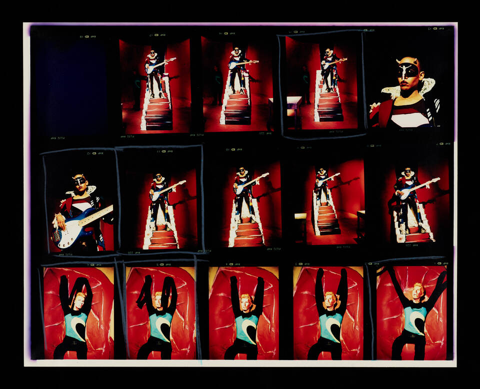 Contact sheet of recording session for ‘Dead Man Walking’ music video from album 'Earthling' by David Bowie, directed by Floria Sigismondi, 1997 -
