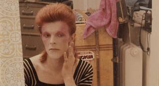 Bowie applying makeup as Ziggy Stardust. Photo by Mick Rock, 1973 -