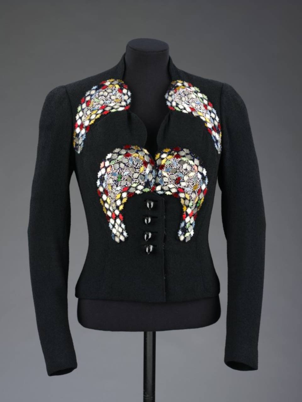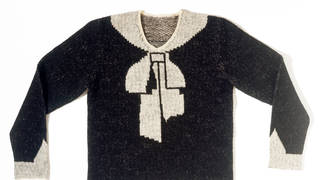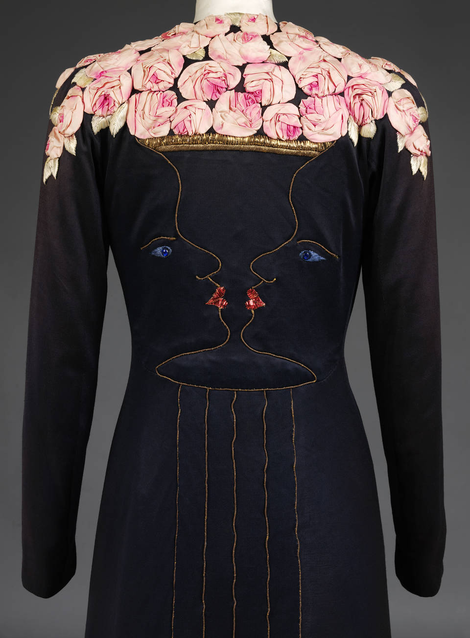 Schiaparelli worked within the confines of traditional tailoring but played with subversive details, extraordinary materials and the imagery of Surrealism to create unique fashion statements. Our collection includes one of her earliest designs, a black jumper knitted with a white bow, alongside her most powerfully Surrealist works, designed in collaboration with the artists Salvador Dali and Jean Cocteau.